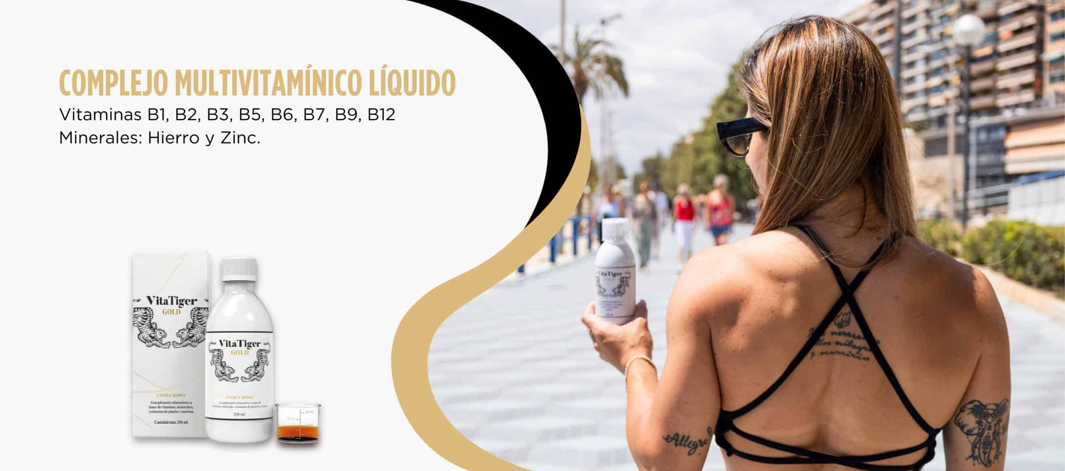 Elige VitaTiger Gold 250 ml, la fórmula líquida que impulsa tu energía, concentración y recuperación diaria. Incluye vaso dosificador de 10 ml para 25 dosis llenas de vitalidad. ¡Solo necesitas una dosis al día!